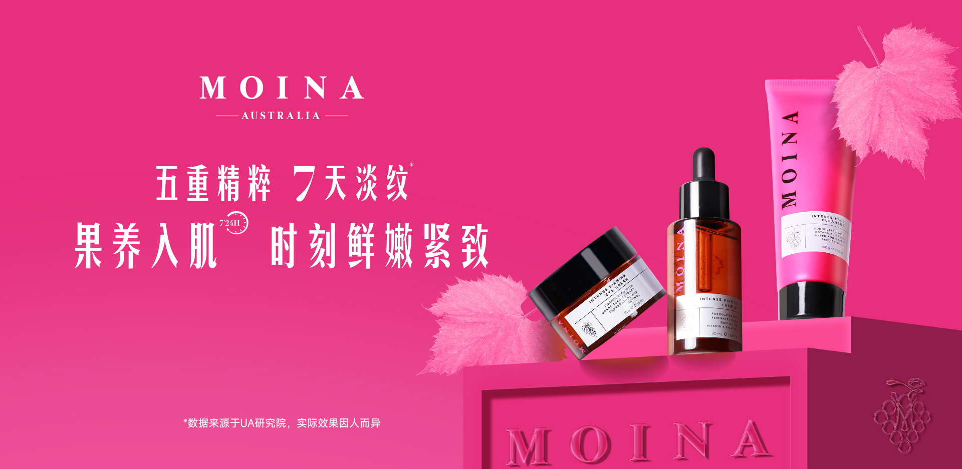 澳洲莫伊納是一個專注于研究葡萄的美肌力量,代表純凈,天然,科技,可持續(xù)的護(hù)膚品牌 MOINA的品牌愿景:專注中國化妝品CS渠道,以澳洲進(jìn)口,葡萄+科技的果養(yǎng)入肌護(hù)膚理念為核心差異,打造符合中國18-38歲熱愛鮮果純凈護(hù)膚的年輕女性的護(hù)膚產(chǎn)品,品牌核心功效是緊致抗皺,讓女性肌膚以果養(yǎng)入肌7*24H,時刻鮮嫩緊致。 MOINA的核心價(jià)值:葡萄等澳洲天然水果成分,擁有強(qiáng)大的抗氧化能力,用葡萄+科技及其他鮮果力量,打造出澳洲進(jìn)口的天然護(hù)膚品,以果養(yǎng)入肌7*24H為理念,讓女性肌膚時刻鮮嫩緊致/嫩白 MOINA的核心用戶:18-38歲時尚潮流敏銳度、熱愛鮮果純凈護(hù)膚的年輕女性群體 |